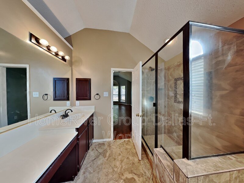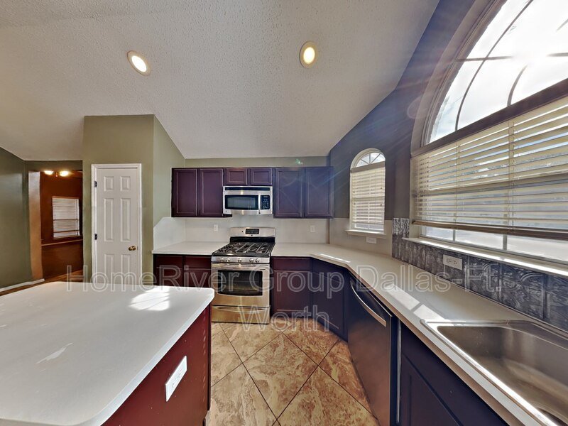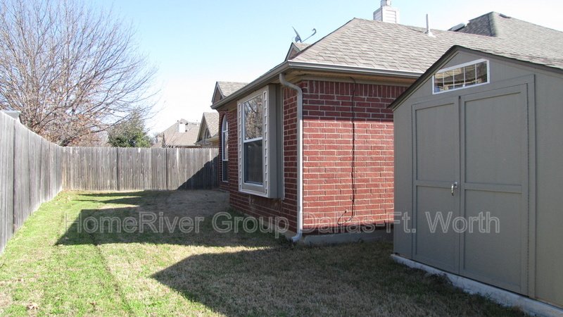 Discover this exceptional home in the desirable Park Glen Addition, boasting a prime corner lot and charming landscaping. Zoned for Keller ISD, this residence features a chef-inspired kitchen with abundant cabinetry and counter space, a gas cooktop, built-in microwave, stainless steel appliances, an island, and a breakfast nook (tenant is responsible for providing their own refrigerator). Enjoy the inviting family room with a beautiful brick fireplace. The split bedroom layout provides enhanced privacy. Experience a light and bright ambiance throughout, complemented by warm neutral tones and no carpet. The primary suite offers a relaxing garden tub, separate shower, and walk-in closet. Outside, find an extra-large backyard with a delightful covered patio for entertaining and a spacious storage shed.