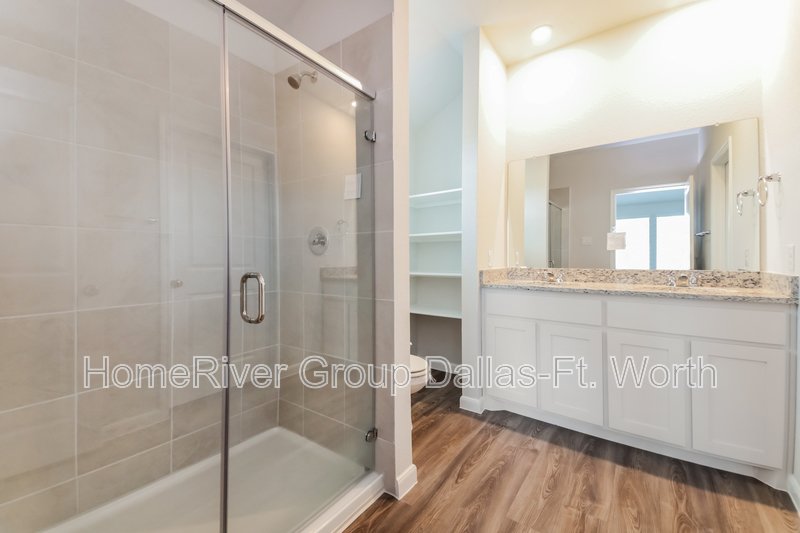 The primary bedroom boasts an en-suite bathroom with dual vanities and a generously sized walk-in closet, offering a comfortable and functional space for daily routines.