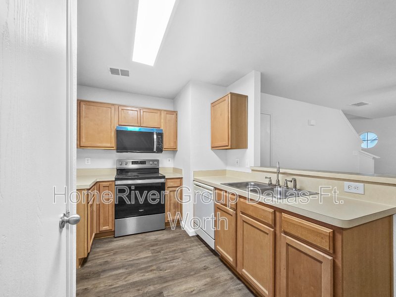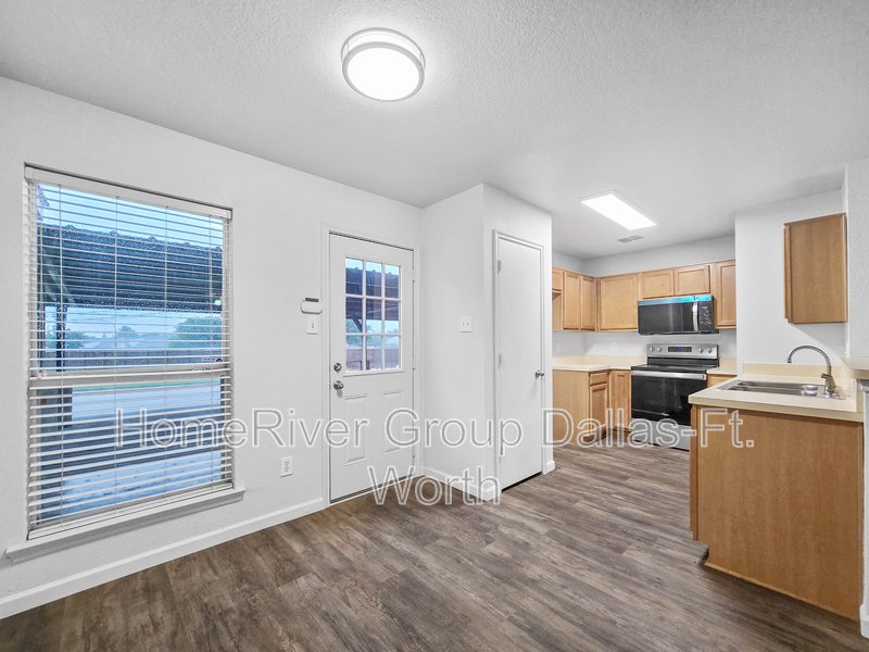 Welcome to this charming 2-bedroom, 1.5-bathroom home in Fort Worth, perfectly located right next to Remington Point Elementary School. The first floor features beautiful hardwood flooring, while the second floor offers cozy carpeting. The kitchen boasts wood grain cabinets and brand-new stainless steel appliances. Enjoy a spacious primary bedroom and the convenience of a covered parking space behind the home. As part of the Remington Point Villas HOA, you'll have access to a community pool and playground, perfect for relaxation and recreation! Updated Photos to Follow!