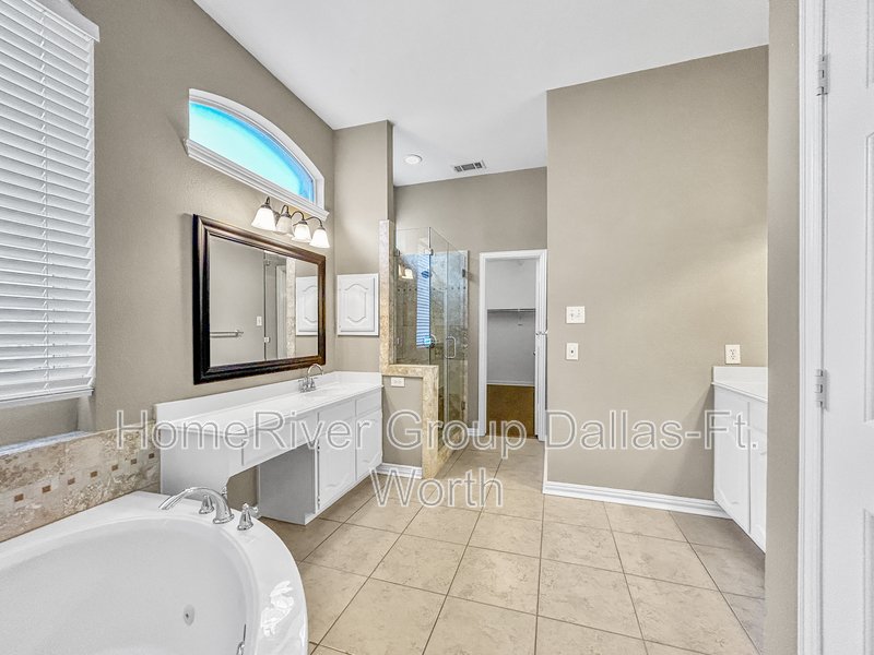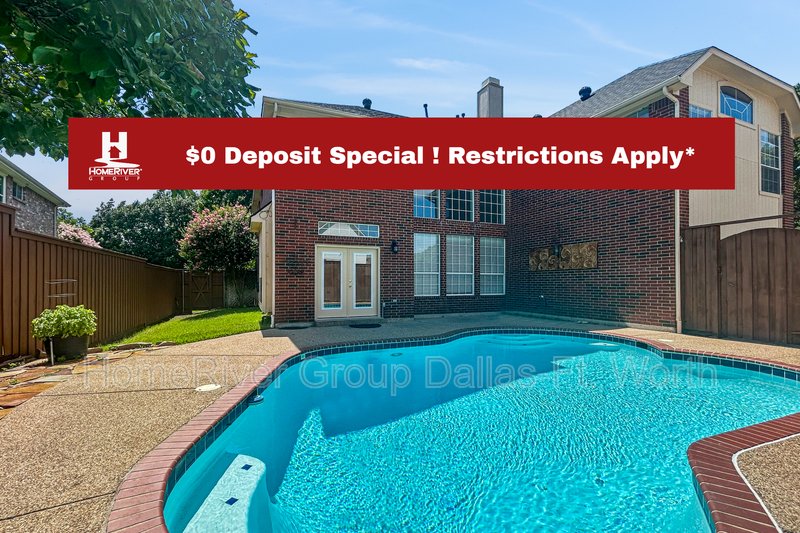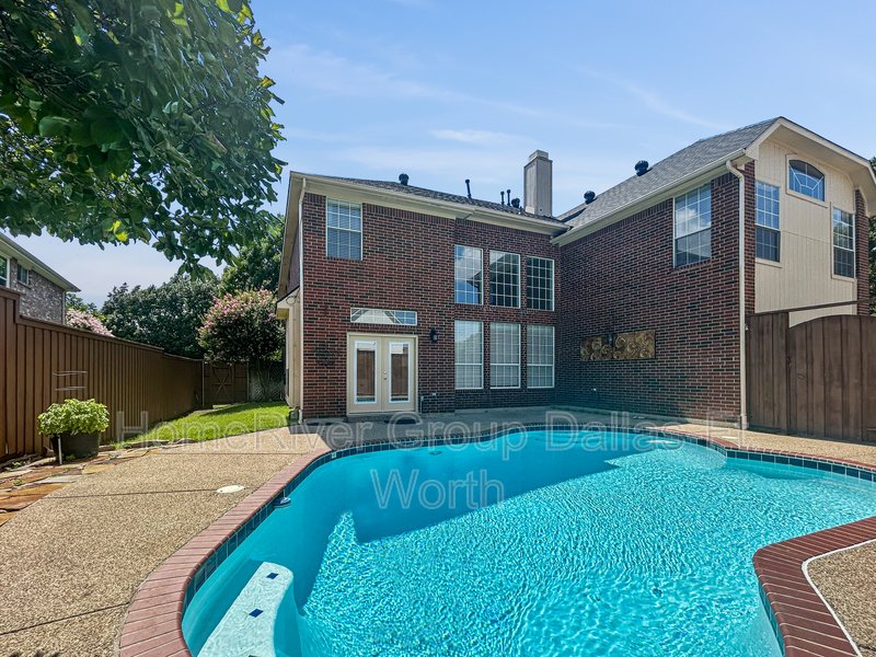 Beautiful and spacious 5-bedroom, 4-bathroom home in Plano, TX featuring a PRIVATE POOL, maintained by owner, and a layout designed for comfort and functionality. This home includes a FRIDGE, WASHER, & DRYER, along with three inviting living areas, a formal dining room, and a cozy breakfast nook. Home offers 2 in faux window blinds throughout and a laundry shute. The main living room boasts soaring ceilings and dual staircases that add a grand touch. The kitchen offers glass backsplash, ample cabinet and counter space along with a walk-in pantry, perfect for the home chef. Breakfast nook offers a window bench for qualifty time. The primary suite includes a luxurious private bathroom with a soaking tub, separate framless shower and riverwalk flooring, and dual vanities. The primary's closet has plenty of space with racks toouching the ceiling. Upstairs you'll find a large media room with dual fans and generously sized secondary bedrooms, and shared en-suite bathroom. Laundry room has a seperate laundry sink. Conveniently located near Lt. Russell A. Steindam Park, Preston Rd, and Legacy Rd.