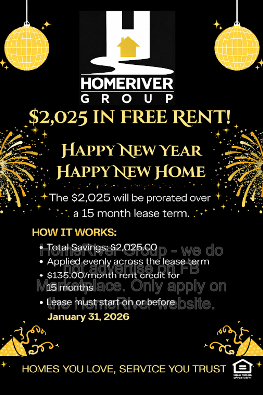 HomeRiver Group does not advertise properties on Facebook MarketPlace, Craigslist, LetGo, or other classified ad websites. If you suspect one of our properties has been fraudulently listed on these platforms, please notify HomeRiver Group immediately. All payments related to leasing with HomeRiver Group are made exclusively through our website. We never accept wire transfers or payments via Zelle, PayPal, or Cash App. Lease your home safely through www.Homeriver.com or with the assistance of a licensed HomeRiver Group leasing agent. All leasing information contained herein is deemed accurate but not guaranteed. Please note that changes may have occurred since the photographs were taken. Square footage is estimated.