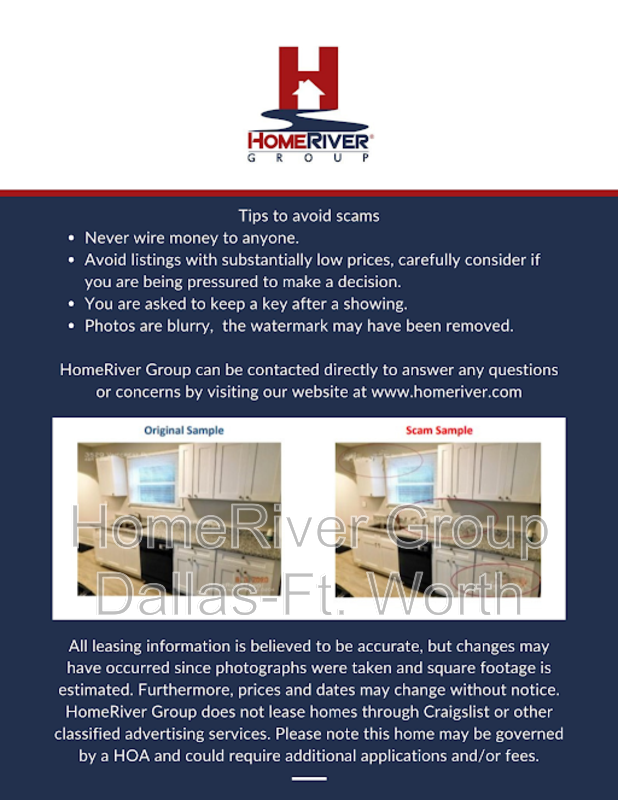 HomeRiver Group does not advertise properties on Craigslist, LetGo, or other classified ad websites. If you suspect one of our properties has been fraudulently listed on these platforms, please notify HomeRiver Group immediately. All payments related to leasing with HomeRiver Group are made exclusively through our website. We never accept wire transfers or payments via Zelle, PayPal, or Cash App. Lease your home safely through www.Homeriver.com or with the assistance of a licensed HomeRiver Group leasing agent. All leasing information contained herein is deemed accurate but not guaranteed. Please note that changes may have occurred since the photographs were taken. Square footage is estimated.