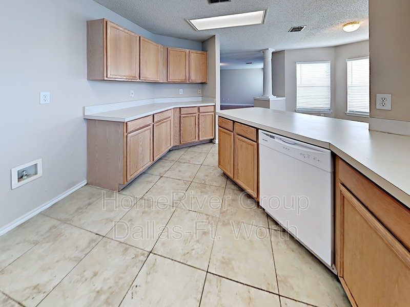 Fantastic home in the Fossil Springs Addition! Birdville ISD. This four bedroom, 2 story home has an abundance of space. The formal dining room makes for a perfect study or kids play area upfront as you walk into the home. Family room is in the back and opens to the breakfast nook and extra-large kitchen. Multiple windows in the nook provides good natural light downstairs. Warm neutral tones. Ceiling Fans. 2-inch blinds. Master suite includes a sitting area, plus 2 walk in closets, a garden tub, separate shower, dual sinks, linen closet and medicine cabinet. Soaring shade tree in the front yard. Oversized private fenced backyard. Closet to hwy, shopping and dining.
