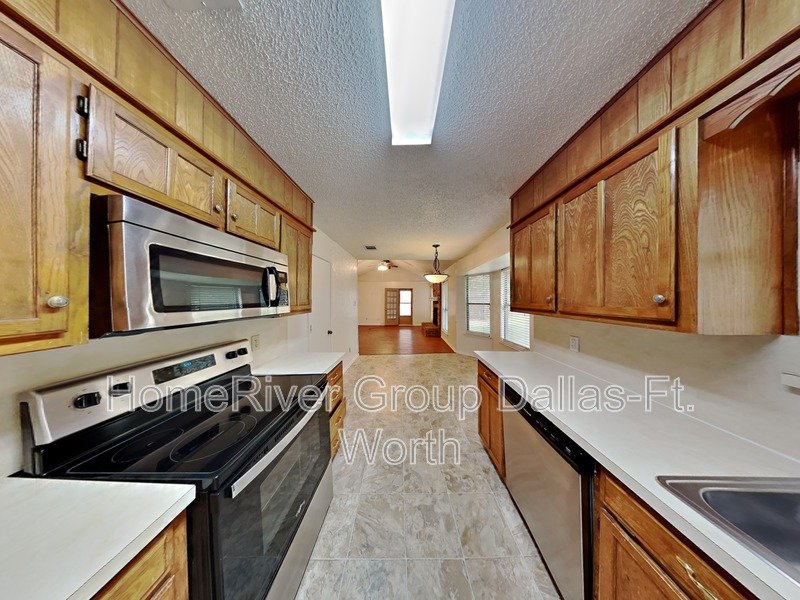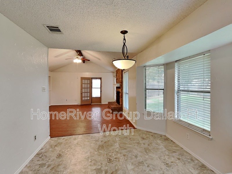 Wonderful home in Watauga in Foster Village Subdivision! Birdville ISD. Vaulted Ceilings. Ceiling Fans. Warm neutral tones. Large fenced backyard with soaring shade trees and an oversized patio perfect for cooking out. Gallery kitchen with a plethora of cabinet space and cozy breakfast nook. Large living space with a brick wood burning fireplace. Oversized primary suite with a walk in closet. Close to the HWY for easy access to dining, shopping and entertainment. This home is not set up for housing vouchers.