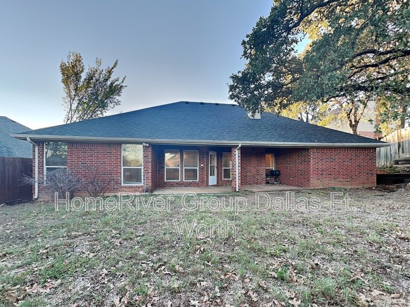 Charming and versatile 3-bedroom, 2-bath home with a dedicated study that can double as a fourth bedroom if needed. The expansive open living area features a cozy wood-burning fireplace, perfect for gathering. Enjoy added privacy with a split-bedroom layout. The spacious primary suite offers a garden tub, separate shower, dual sinks, and a generous walk-in closet. Step outside to a tranquil backyard with mature shade trees and an extended covered patio ideal for relaxation.