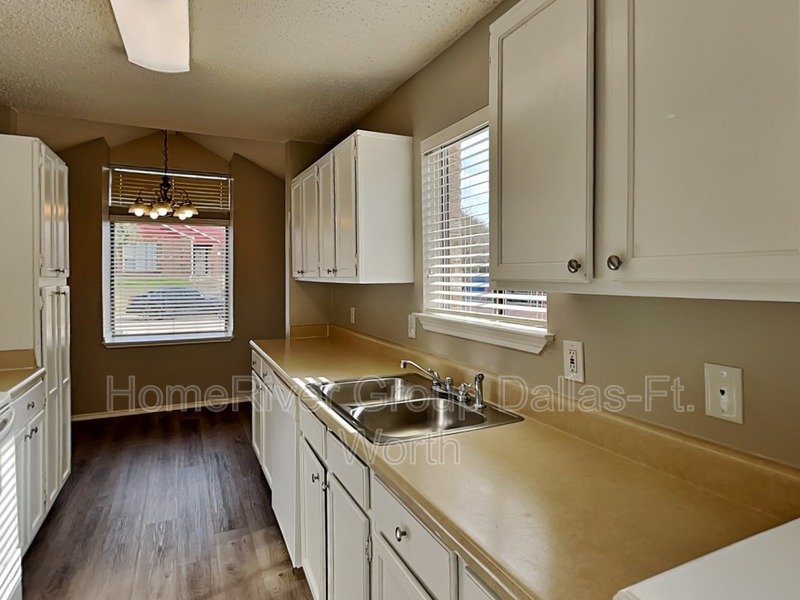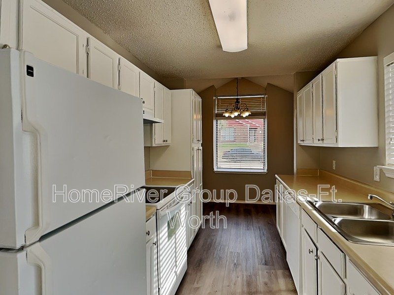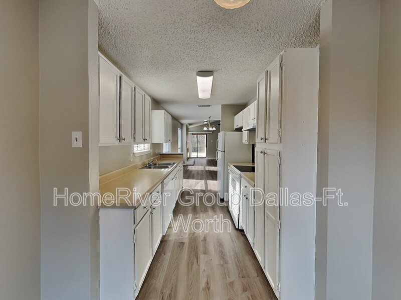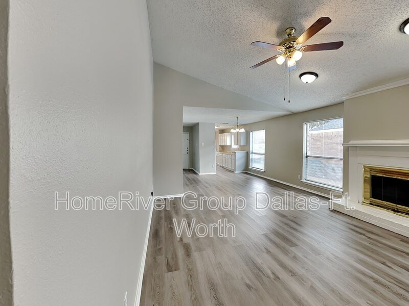 Charming 3-bedroom, 2-bathroom home in Mesquite, TX! The spacious living room with a cozy fireplace flows into a kitchen with ample cabinet space, and the REFRIGERATOR IS INCLUDED. All bedrooms feature wood vinyl flooring, with the primary bedroom enjoying it's very own private bathroom. The home also includes a large fenced backyard and a 2-car garage for convenience.