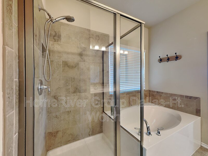 Immaculate four-bedroom home situated in the Emerald Park Addition in a cozy cul-de-sac! Modern paint tones! Update fixtures and fans! Open concept! Split bedroom floorplan for added privacy. Covered front porch perfect for sipping your morning coffee. Primary suite is on the first floor and the en-suite features a garden tub, separate walk in shower, dual sinks and a huge walk in closet with built in shelving. Gourmet kitchen with gorgeous granite countertops, a plethora of cabinet and counterspace, island, stainless appliances and quaint breakfast nook. Vaulted ceilings! Wood Burning Fireplace! Upstairs includes a bonus GAMEROOM, 3rd full bathroom and 4th bedroom. Oversized private fenced backyard with a covered patio perfect for your home grill, storage unit and plenty of room to entertain! This home is a definite must see! LAWN CARE PROVIDED BY LANDLORD.
