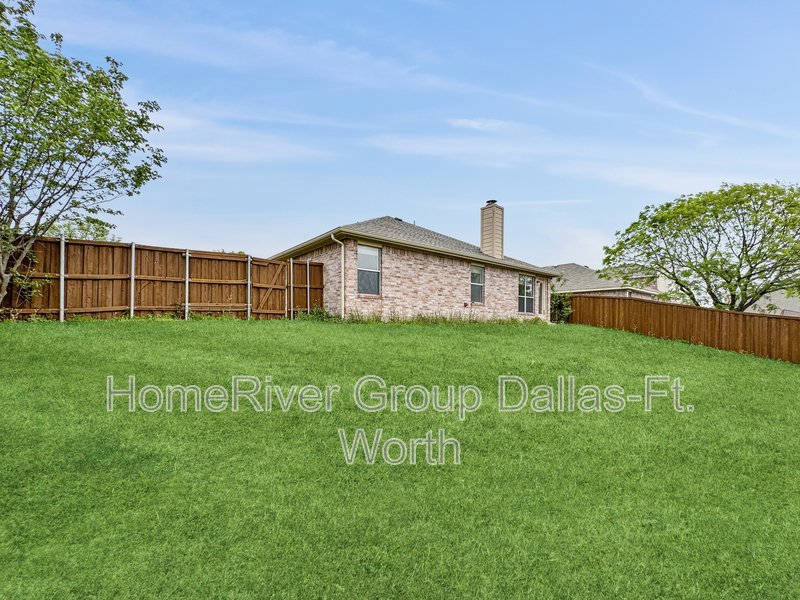 Welcome to this spacious single-story home in the heart of Sachse! Featuring 3 bedrooms and 2 bathrooms, this home boasts an open-concept floor plan. The expansive living room seamlessly flows into the formal dining and living areas, complete with a cozy fireplace. The kitchen is a delight, featuring sleek granite countertops, ample cabinetry, and plenty of prep space. The split floor plan offers privacy, with the main bedroom retreat showcasing dual sinks, a relaxing garden tub, a separate shower, and generous walk-in closets. Step outside to enjoy the large fenced backyard. Conveniently located near dining options, easy access to I-78, and Sachse City Park, this home offers both comfort and convenience.