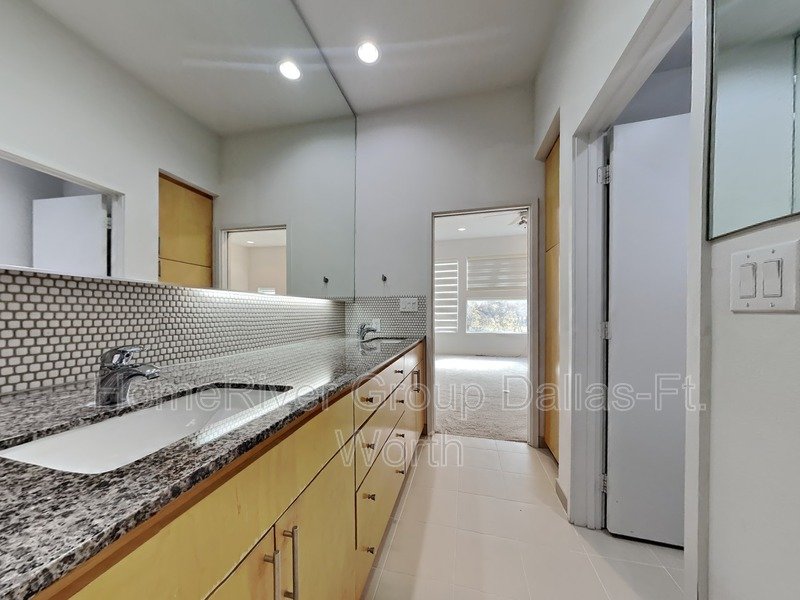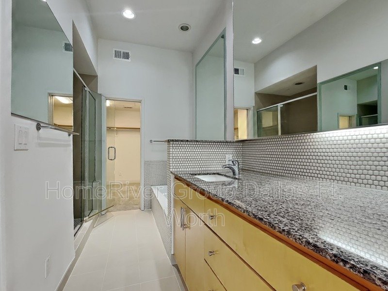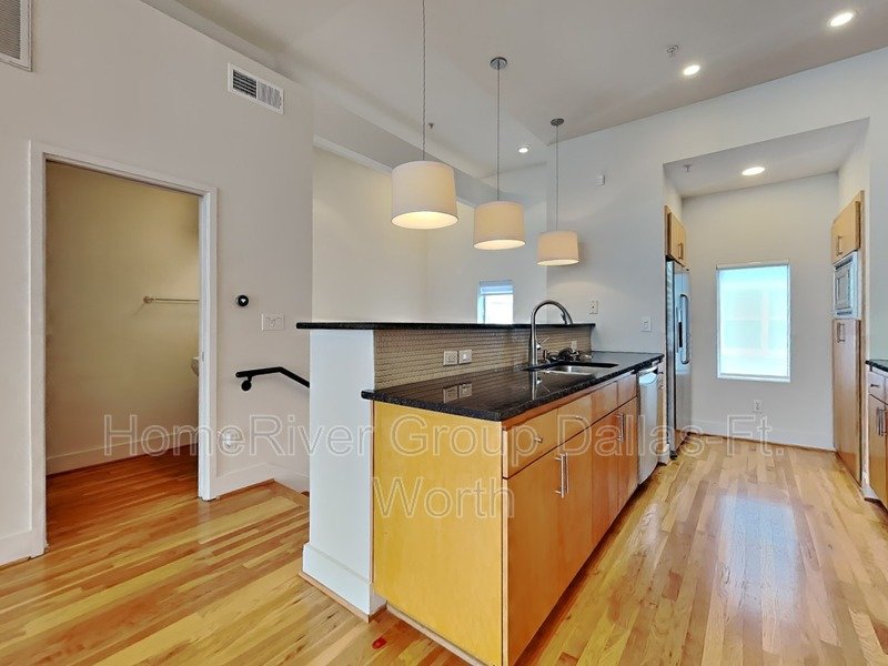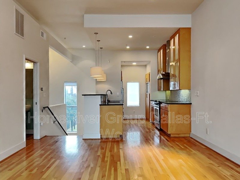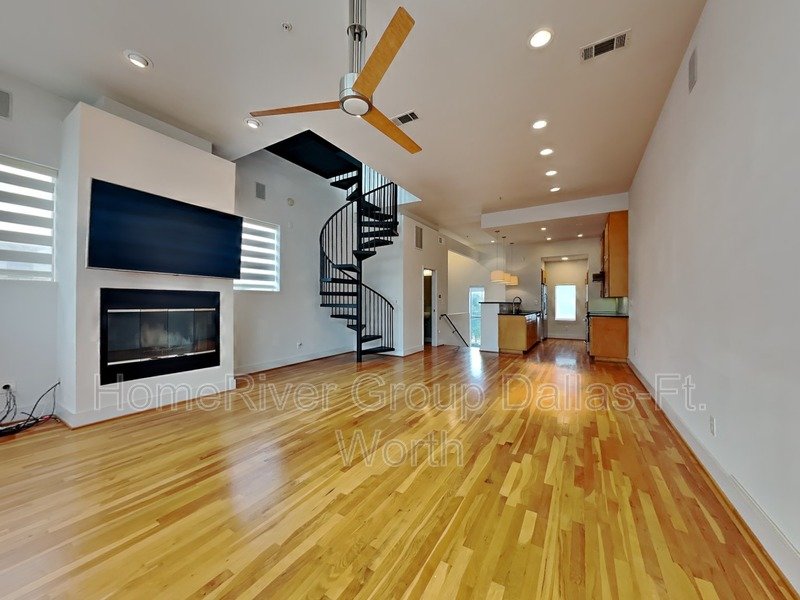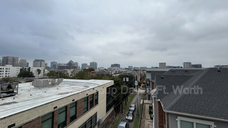 Uptown living at its finest. This elegant 3 story, 2 bedroom, 2.5 bathroom home has a roof top deck with breath taking views of the downtown Dallas skyline. Living room features tall ceilings, automatic blinds and 65 inch wall mounted television. Kitchen features a built in microwave and side by side refrigerator. Third floor primary bedroom features automatic blinds, spacious walk in closet with extra storage space, dual vanities, separate shower and garden tub. Front loading washer and dryer included. Two garage and close to green space, city park and playground. Close to 75, I45 and Wood Rogers. Minutes from McKinney Ave and downtown Dallas. HOA pays water, sewer and trash.