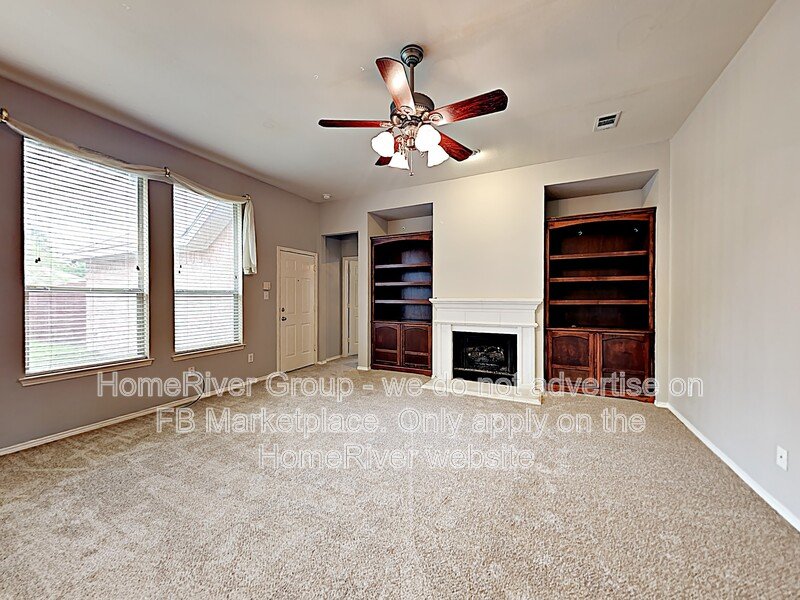 Welcome to this beautiful 3-bedroom home located in the highly desirable Caruth Lake subdivision, offering the perfect blend of comfort, charm, and convenience. Featuring a spacious and functional layout, this home includes two inviting living areas and two dining spaces, providing plenty of room for both entertaining and everyday living. The main living room is warm and welcoming, showcasing a cozy fireplace framed by elegant built-in wooden cabinets, all open to the kitchen for a seamless flow. The kitchen itself exudes classic appeal with its rich wood-grain cabinetry, tasteful wallpaper accents, and abundant counter and storage space, making it ideal for meal prep and family gatherings. The split floor plan provides added privacy, with a serene primary suite that boasts a relaxing garden tub, separate walk-in shower, and a generous walk-in closet. The additional bedrooms are well-sized and versatile, perfect for family, guests, or a home office. Outside, enjoy a private backyard retreat or take advantage of the wonderful community amenities, including a sparkling pool and a playground. Conveniently located near top-rated schools, shopping, dining, and major commuter routes, this Caruth Lake gem offers an exceptional lifestyle in one of the areas most sought-after neighborhoods. No Pets!