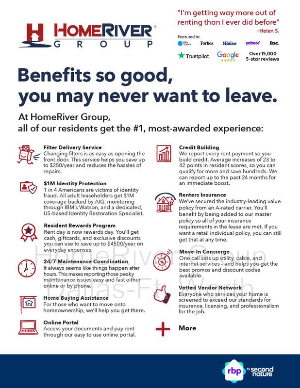 All HomeRiver Group residents are enrolled in the Resident Benefits Package (RBP) for $44.95/month which includes a convenient option for renters insurance, HVAC air filter delivery (for applicable properties), credit building to help boost your credit score with timely rent payments, $1M Identity Protection, move-in concierge service making utility connection and home service setup a breeze during your move-in, our best-in-class resident rewards program, and much more! More details will be provided upon application.