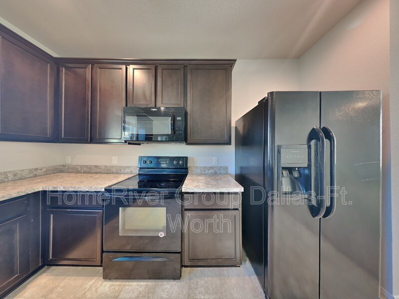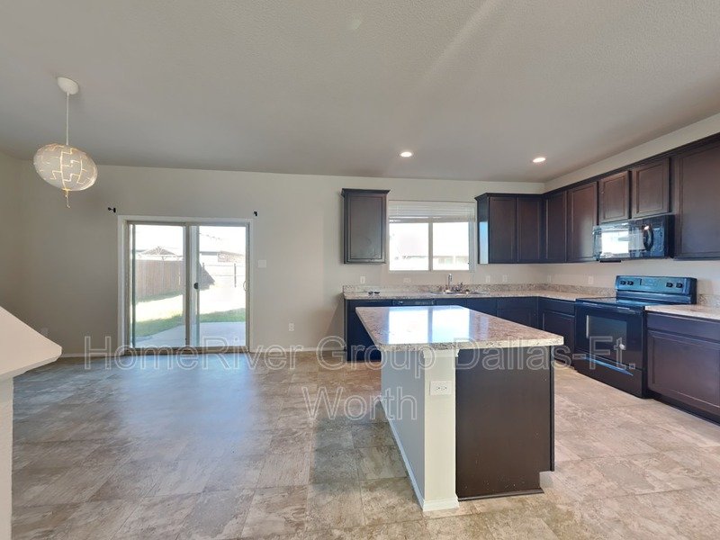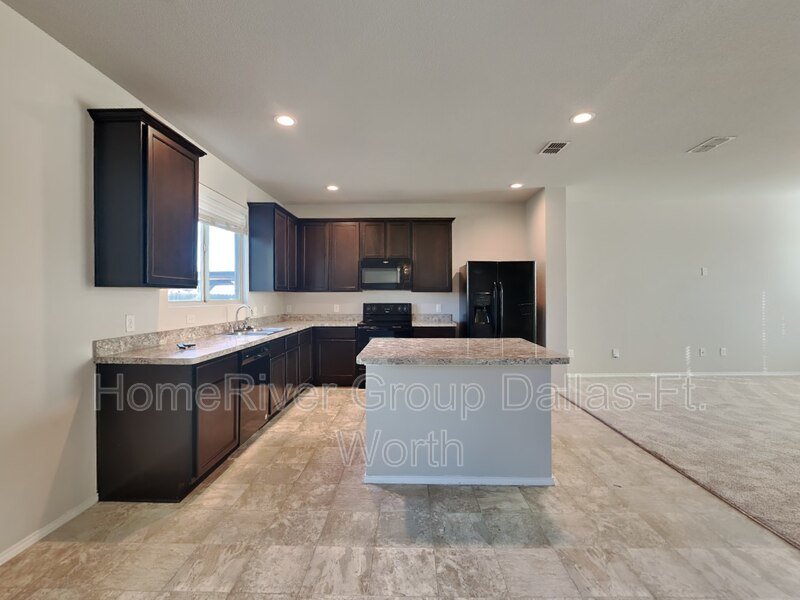 Experience luxurious living in this two-story home within the desirable Lake Vista Ranch Addition, zoned for Eagle-Mt Saginaw ISD. The interior boasts warm neutral tones and a spacious downstairs living area perfect for entertaining. The cozy kitchen features sleek black appliances (refrigerator included), ample cabinet and counter space, a convenient island, and a charming breakfast nook with views of the oversized, fenced backyard and covered patio ideal for grilling and outdoor enjoyment. All bedrooms are located upstairs, including the expansive primary suite complete with a garden tub, separate shower, dual sinks, and a walk-in closet. A bonus area upstairs provides a perfect space for a home office. Enjoy easy access to the highway for a quick commute to Downtown Fort Worth, as well as nearby shopping, dining, and entertainment options. Two year lease option at a reduced rate.
