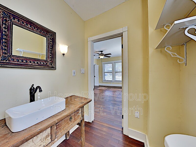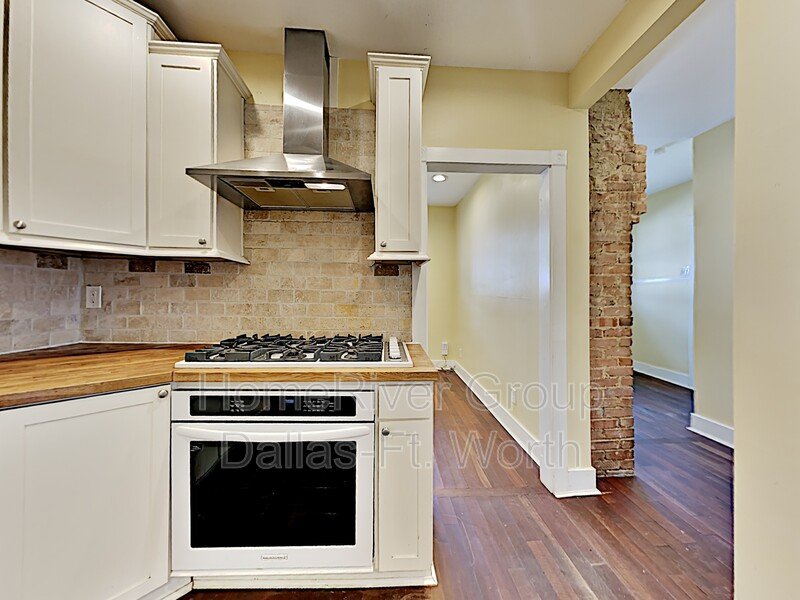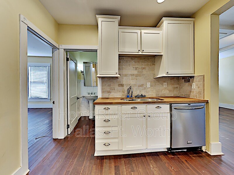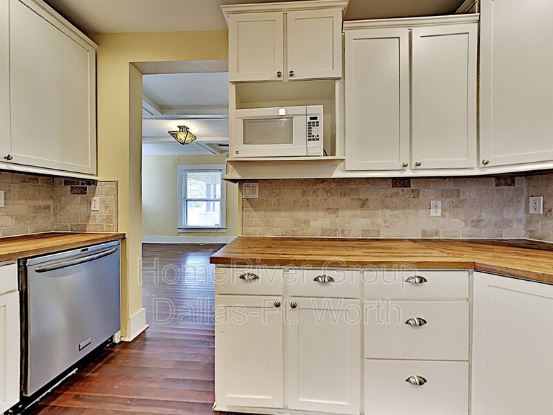Spacious 2 bed, 2 bath home with 1 living area and 2 dining areas. Smaller dining room could be study or office. Kitchen features refrigerator, microwave, gas cooktop, dishwasher & Ceiling fans, hardwoods and full-sized washer & dryer connections with large utility room. Covered front porch, screened in back porch and large fenced yard. Convenient to shopping, restaurants, Bishop Arts and major roads. Refrigerator included!