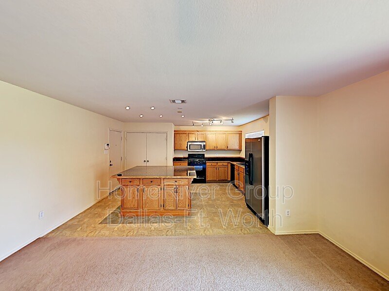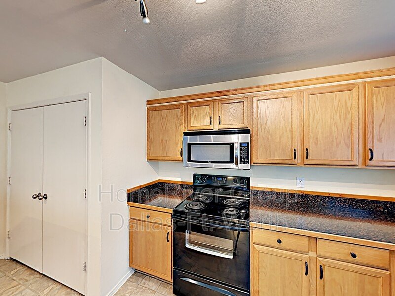 Terrific Two Story on a Corner Lot in the Palmilla Spgs Addition! Soaring shade trees as you drive up with a cozy covered front porch perfect for sipping coffee! Large open living area as you walk into the home. Formal dining room is huge and opens to the spacious kitchen and breakfast nook. This would work great as a 2nd living space. Kitchen boasts a gigantic island, a plethora of cabinet and counterspace, sleek black appliances (electric range oven-stove, built in microwave, dishwasher and fridge). Large private fenced backyard. All bedrooms are oversized and upstairs. Primary ensuite features a large walk-in closet and dual vanities. Modern paint tones throughout! Bay Windows! Ceiling Fans! 2-inch blinds! 2 car garage! Community Park! Close to HWY for easy commute to Downtown Fort Worth, Shopping and or Dining! This is a must see!