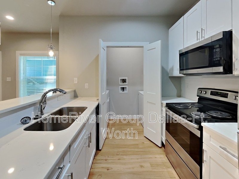 STOP your search and pull your car into your own TWO car garage, and while you're at it unpack your belongings. YOU NOW HAVE MONEY FOR YOUR THURSDAY NIGHTS. What about the Electricity, Water, Internet and Yard Care? That's already included in the $350 a month fee. That means a cold place to be during the summer, and a warm and cozy place to be during the winter. Welcome yourself home to this 2 bedroom 2 bath property within close proximity to UNT, TWU, shopping, and entertainment. Kitchen includes stainless steel appliances and a refrigerator. Utility room with washer and dryer. Lvt flooring throughout the home. Each room has its own attached private bathroom. Garage is located below the unit. This home is not set up for housing vouchers. Photo from a similar unit.