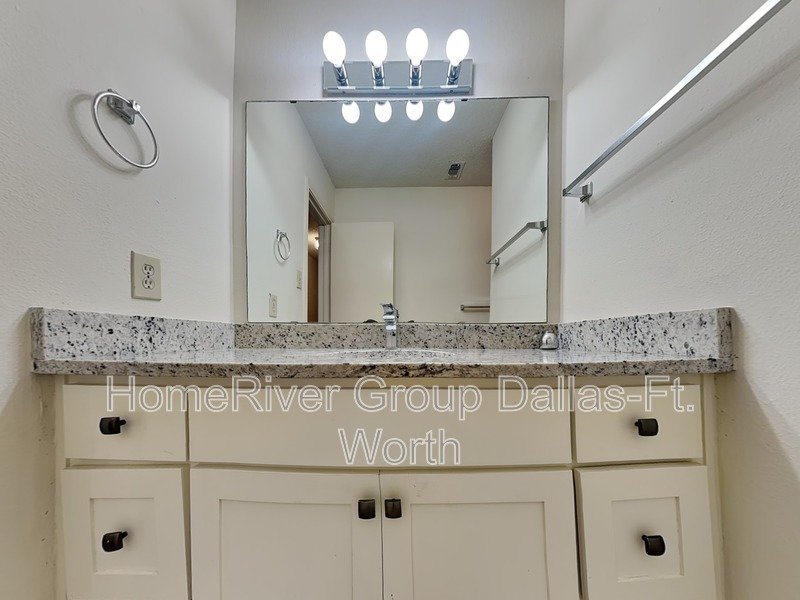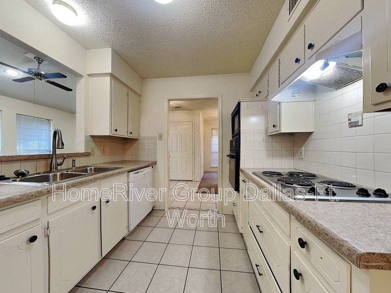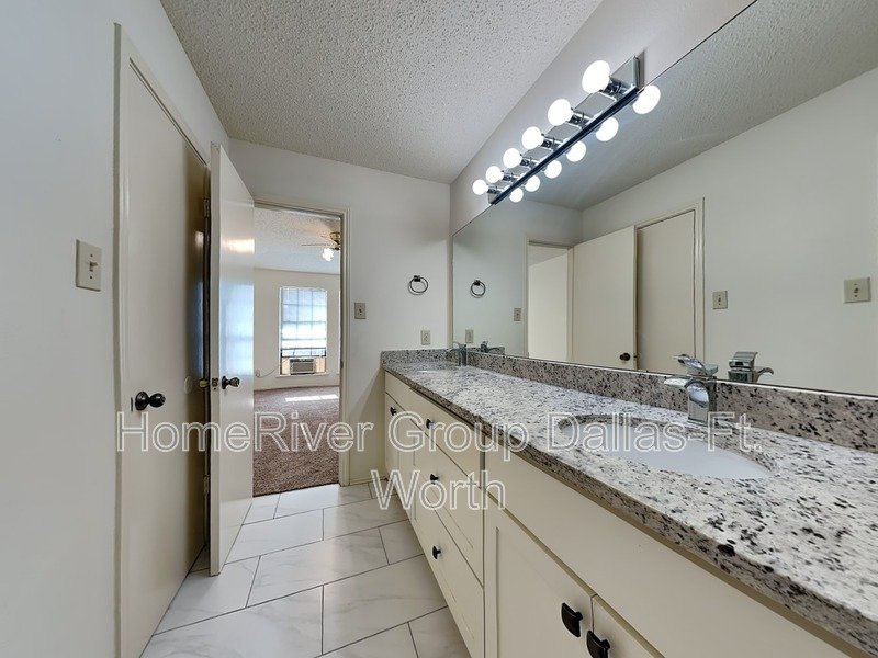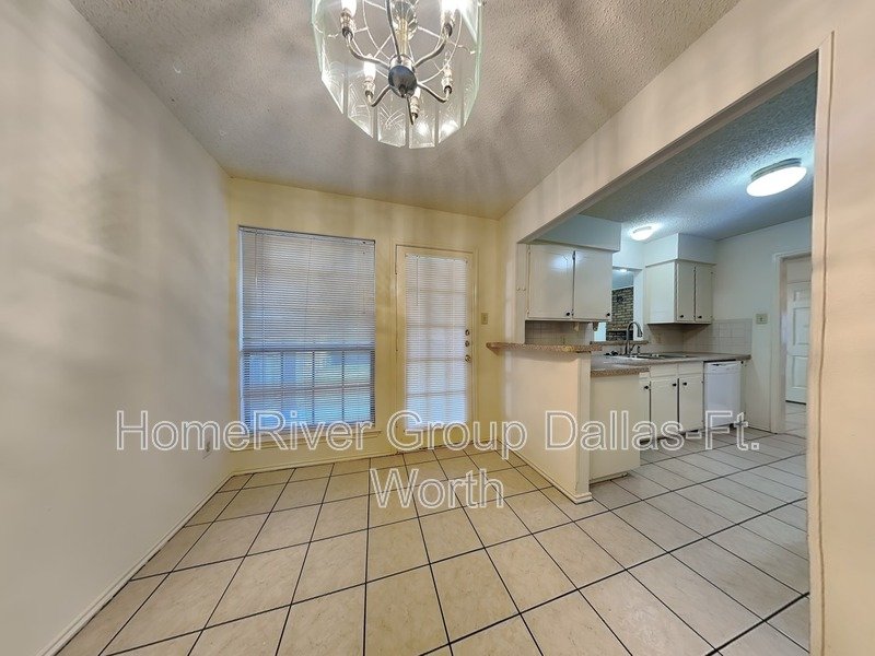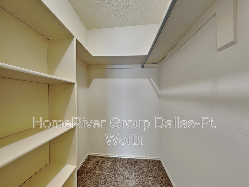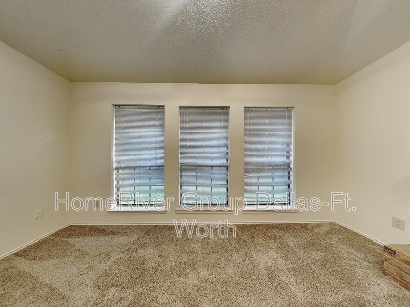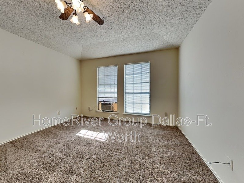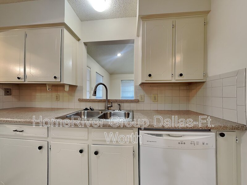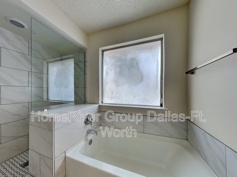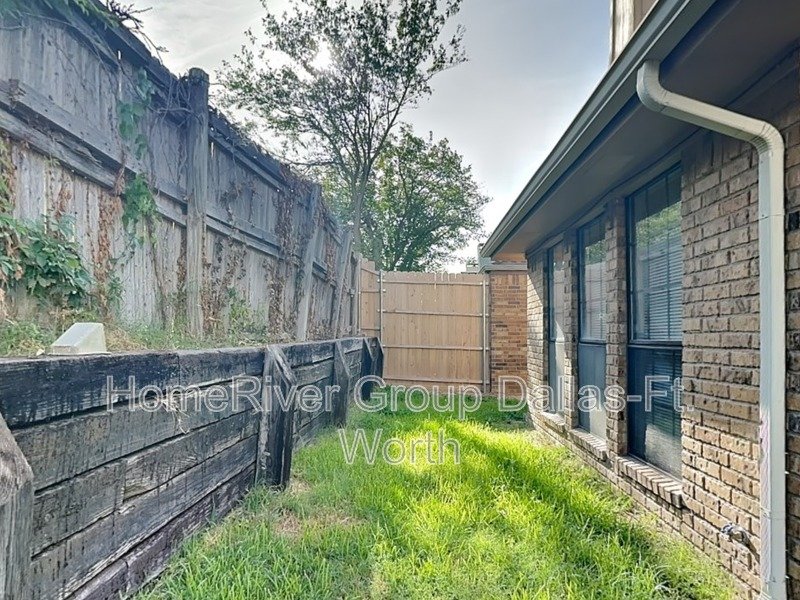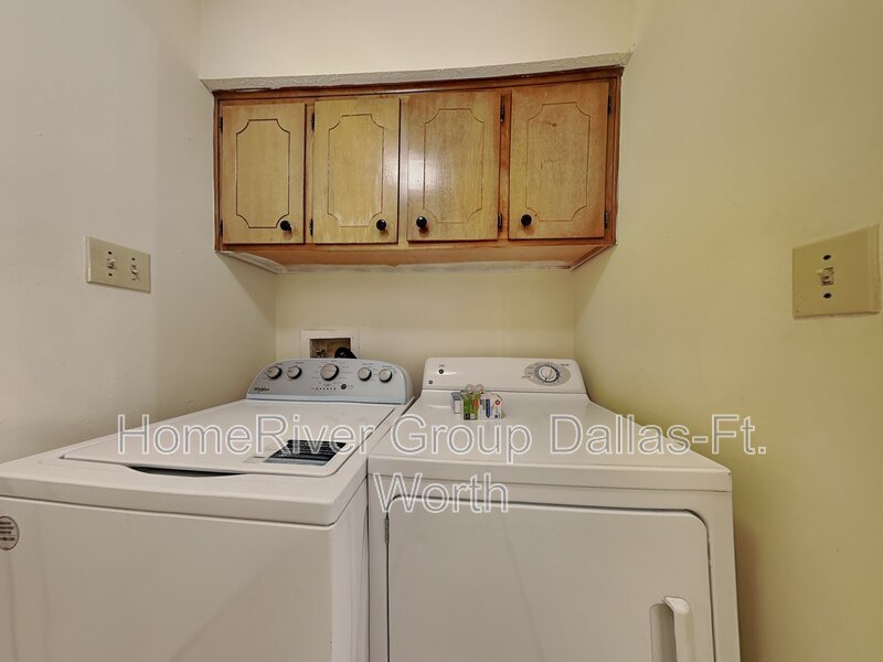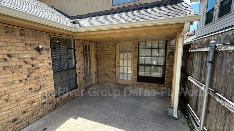 Wonderful garden style home near I30 and I635. This 3 bedroom, 2 full bathroom features two downstairs bedrooms with full bathroom and one primary bedroom upstairs with dual sinks, two closets, separate shower and garden tub. Kitchen features built in microwave. Living room with gas fireplace and two dining areas. Washer and dryer included. 2 car garage, covered patio with small backyard.