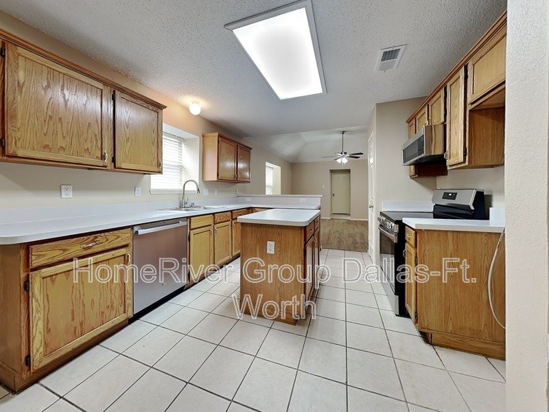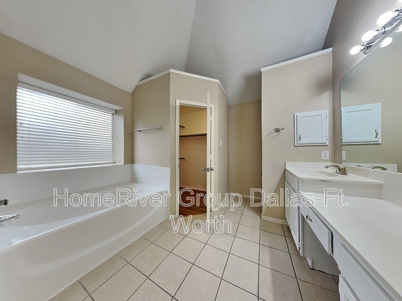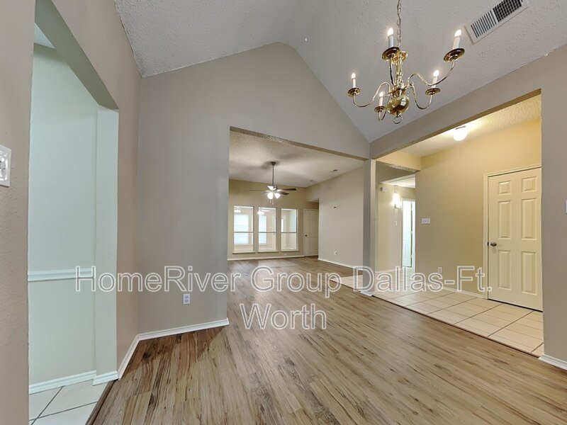 Spacious 3 bedroom 2.5 bath home in Rowlett with 2 living areas. The second living area could be a study or game room. Formal dining and breakfast area. Island kitchen. Lots of ceramic tile. Master has garden tub, separate shower, dual vanities and two walk-in closets. Convenient access to Hwy 66 and George Bush Toll Road.