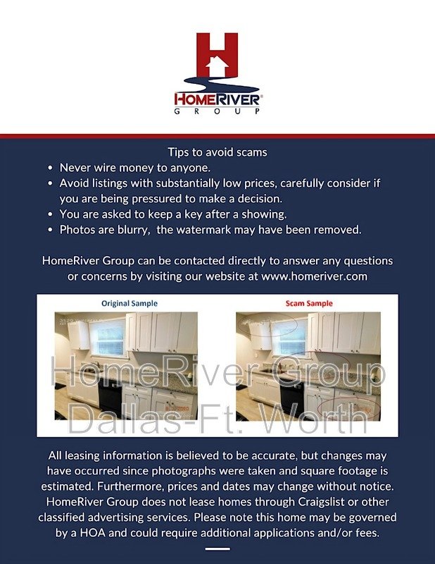 RED FLAGS - HomeRiver Group licensed brokerage does not advertise properties on Craigslist, Facebook Marketplace, LetGo, or other classified advertising websites. We will never ask for funds through CashApp, Zelle, cash, Venmo, Apple Pay, Paypal or other peer-to-peer networks. If you believe one of our properties has been listed on these sites by a scammer, please notify the office. Verify office number by Google.