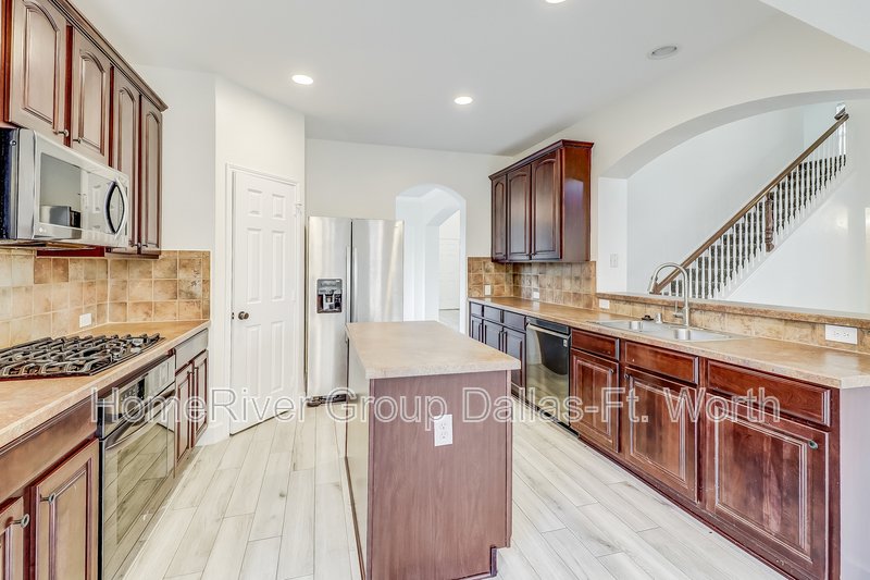Terrific 2 story in Mansfield situated in the Villages of Spring Lake Addition on a cul-de-sac! Lovely extra-long covered front porch perfect for sipping your morning coffee! Bonus office at front of the property! Elegant formal dining room ideal for entertaining. Spacious kitchen built for a chef that features stainless appliances, gas cook top, island, breakfast bar, breakfast nook, walk in pantry and an abundance of cabinet and counterspace plus a fridge. Huge family room downstairs with a fabulous fireplace. Modern feel throughout! Fresh paint! Oversized bedrooms! Additional living spaces upstairs! Primary bedroom is oversized and the ensuite includes a garden tub, separate shower, dual sinks and gigantic walk-in closet. Beautiful upstairs balcony! Private fenced backyard. Highly sought-after Mansfield ISD! This is a must see!