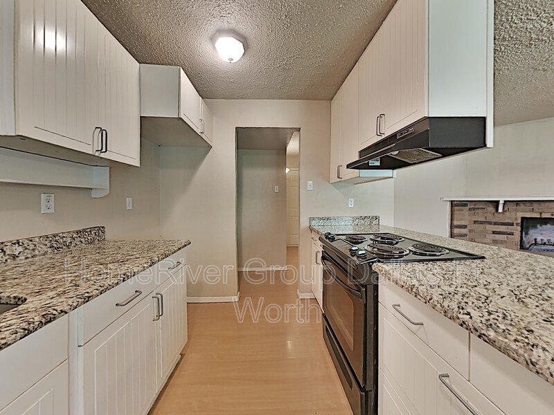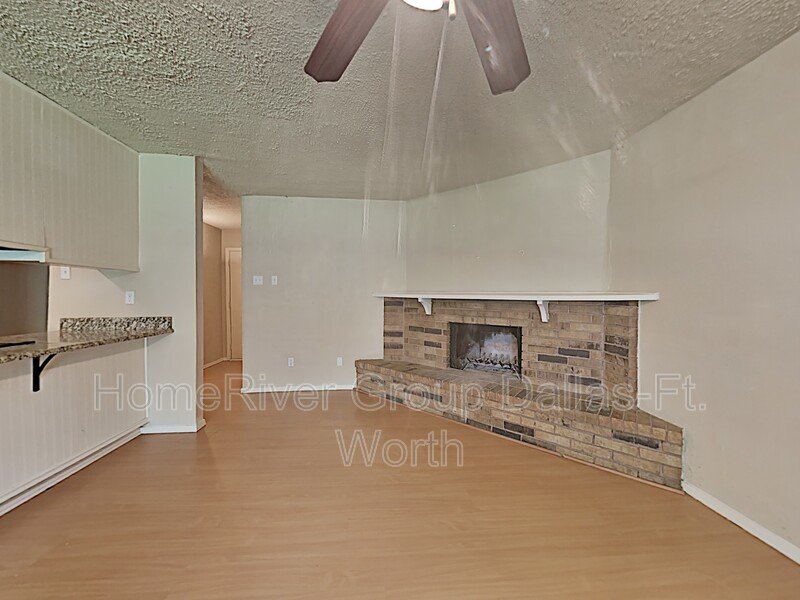 Adorable 3-bedroom 2-bath in the heart of North Richland Hills in North Park Estates. Recent updates include granite countertops! Nice modern white cabinets in the gallery kitchen. Open concept! Neutral tones! Faux wood laminate flooring! 2-inch blinds throughout. Stunning wood burning brick fireplace. Gigantic backyard perfect for a cook out. Storage unit is a plus! Close to hwy and shopping. CHECK IT OUT!