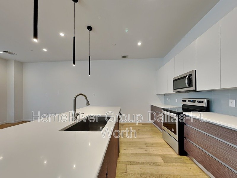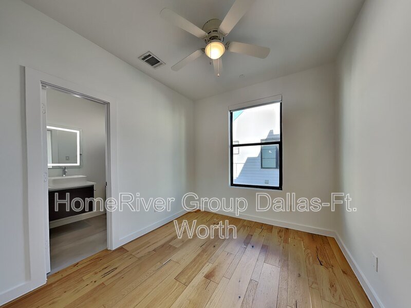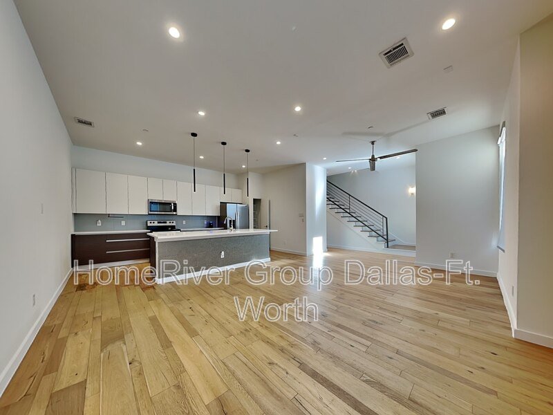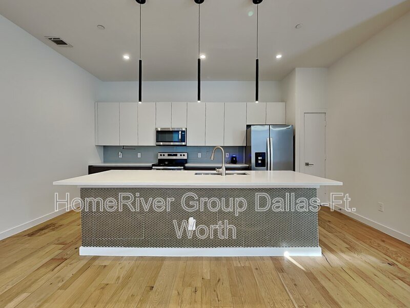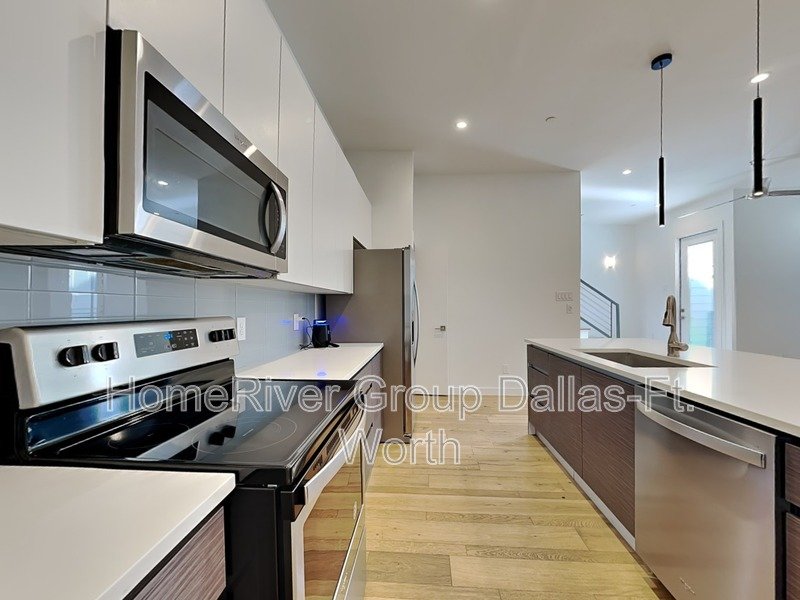 This stylish 2-bedroom, 2.5-bathroom home in Dallas boasts a sleek, modern exterior that perfectly complements its contemporary interior design. Hardwood floors flow throughout the space, enhancing its sophisticated appeal. The kitchen features clean off-white cabinets, elegant countertops, and stainless steel appliances, offering both beauty and functionality. Enjoy outdoor living with a private fenced backyard and a stunning rooftop patio, perfect for entertaining or relaxing with city views. This home seamlessly blends modern luxury with everyday comfort! Refrigerator included!