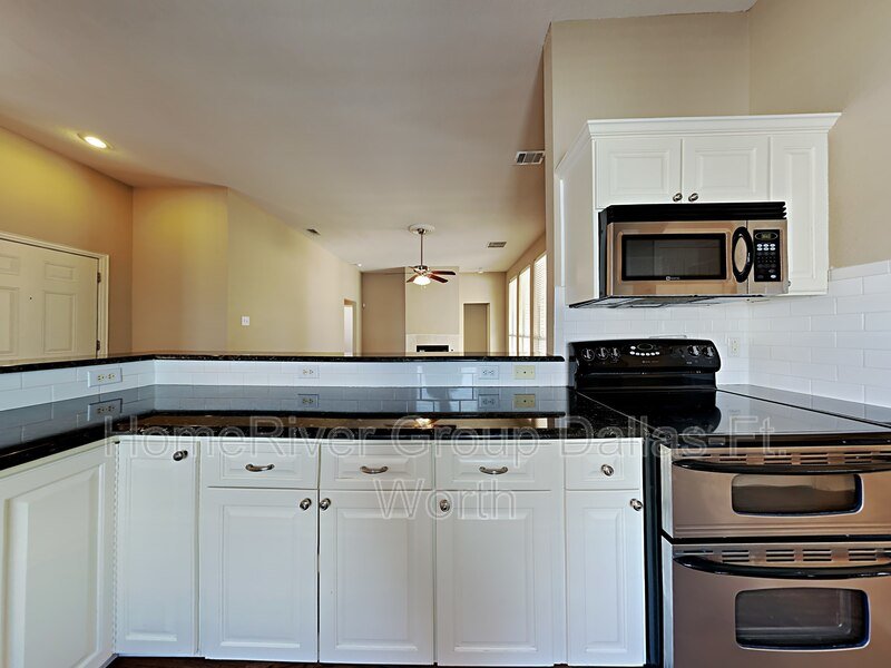 Discover this charming 3-bedroom, 2-bath home in Frisco! Enjoy a bright, open living room with a cozy fireplace that leads into the spacious kitchen with ample white cabinets, and a dining nook. The versatile second living area makes a perfect office. The primary suite features dual sinks, while split secondary bedrooms offer privacy. Relax on the covered patio in the fenced backyard, plus a 2-car garage for convenience.