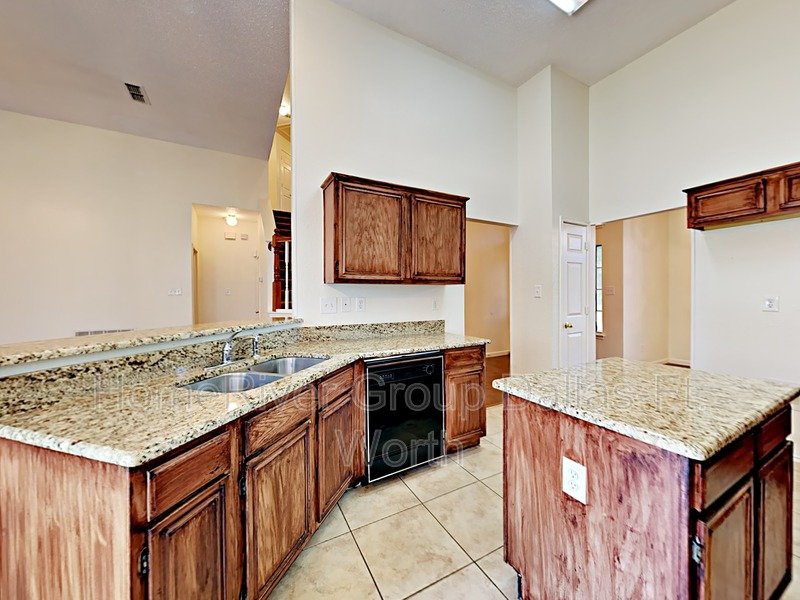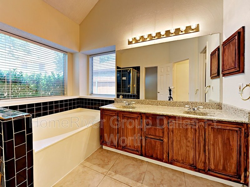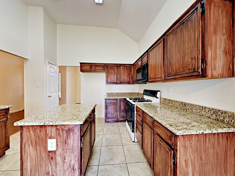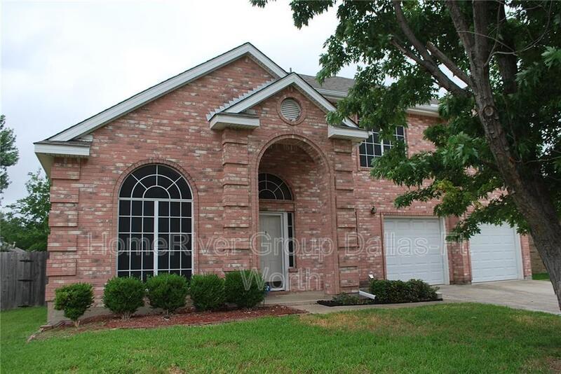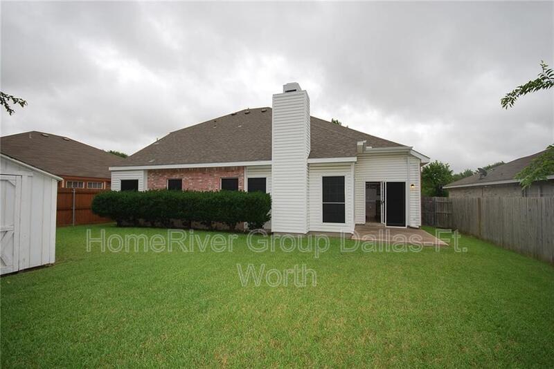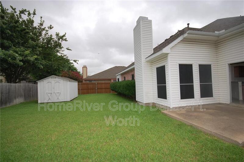 Beautiful 3-bedroom, 2.5-bathroom home with a 2-car garage. Conveniently located near some of Grand Prairies best dining and shopping! The inviting living room features a cozy gas fireplace, while the kitchen boasts elegant wood grain cabinets, granite countertops, and a seamless connection to the formal dining room. Upstairs, a spacious second living area offers versatility as an office or playroom. The massive primary bedroom provides a relaxing retreat, complete with an en-suite featuring dual sinks, a walk-in shower, and a soaker tub with a stunning tile backsplash. Enjoy outdoor living in the fenced-in backyard with a patio and a handy storage shed. No Pets!